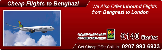 Cheap Flights to Benghazi ( BEN ): To get excellent travel services and best travel deals for Benghazi flights at affordable prices with the lowest cost guaranteed make your flights reservation with us. Scheduled flights to Benghazi and other destinations are largely available with us with a range of airlines to and from the airports you are flexible with. Located on the Gulf of Sidra Benghazi is a pretty, civilized, clean, modern, and wide city filled with parks lakes, fewer ’70s-era concrete buildings, and nice beaches. We have allocation seats with all leading European and African airlines that enable us to offer air fares even cheaper than online fares. We are dealing with more than 300 airlines to give customized solution to fulfill customer’s needs. Afriqiyah Airways, Lufthansa, KLM, Qatar Airways, Kenya Airways, Iberia and Air France fly to Benghazi from all key departure points in UK including London Gatwick, Manchester, London City, Liverpool and Belfast City.